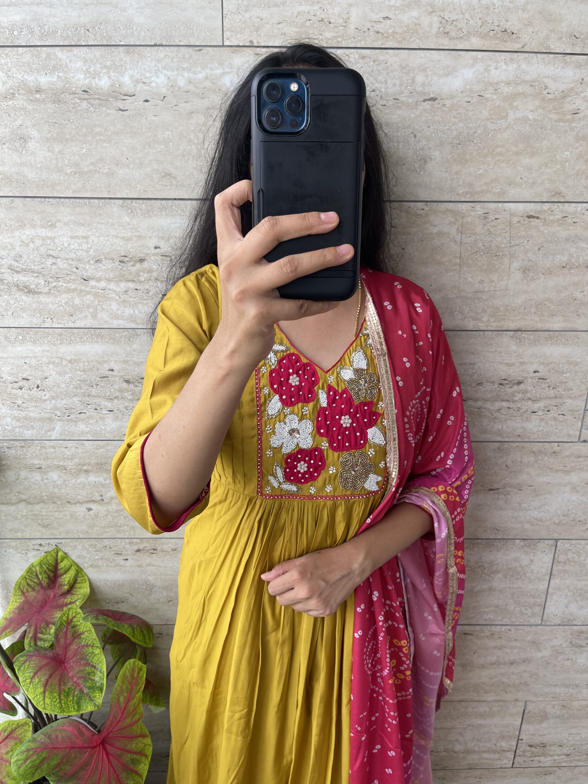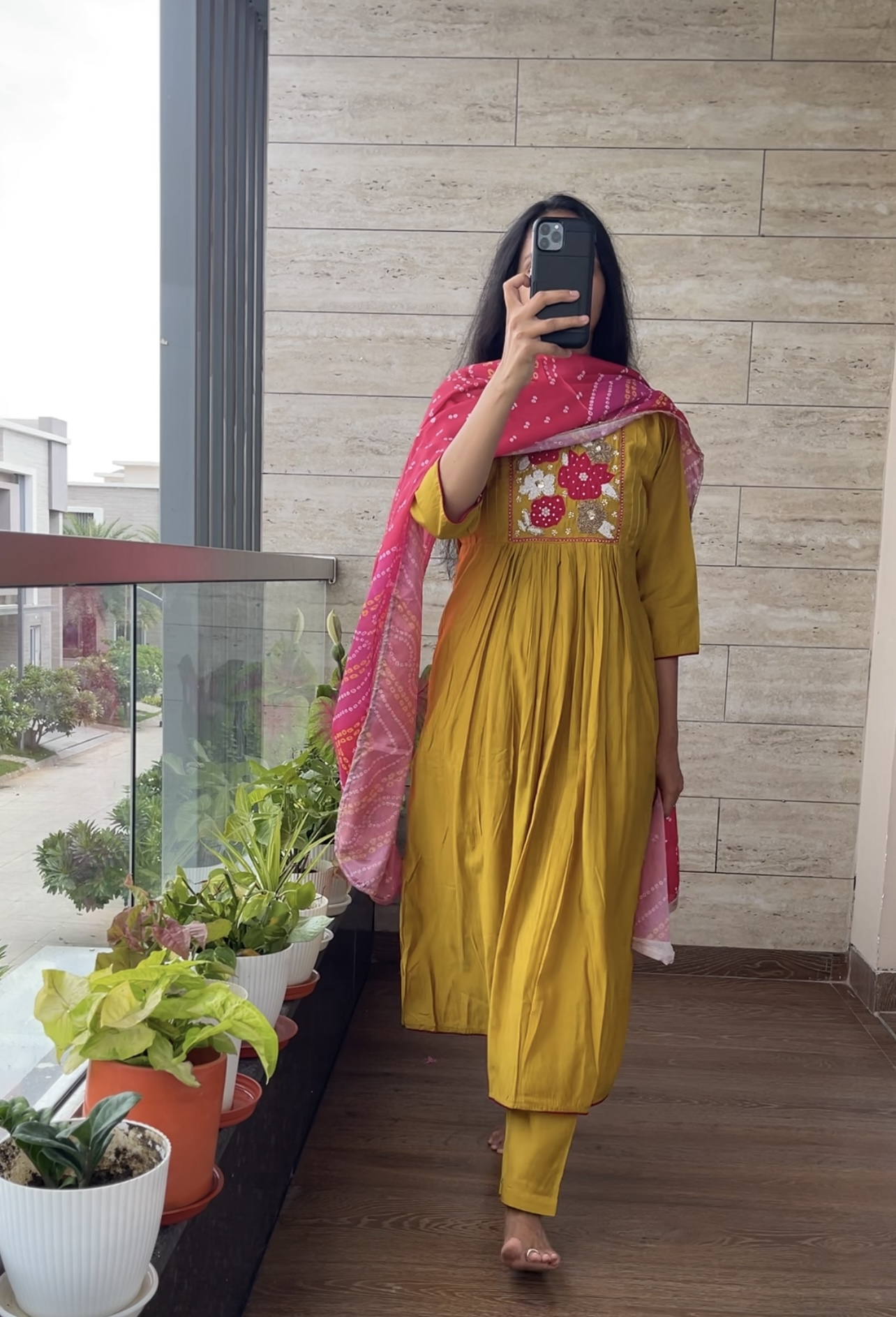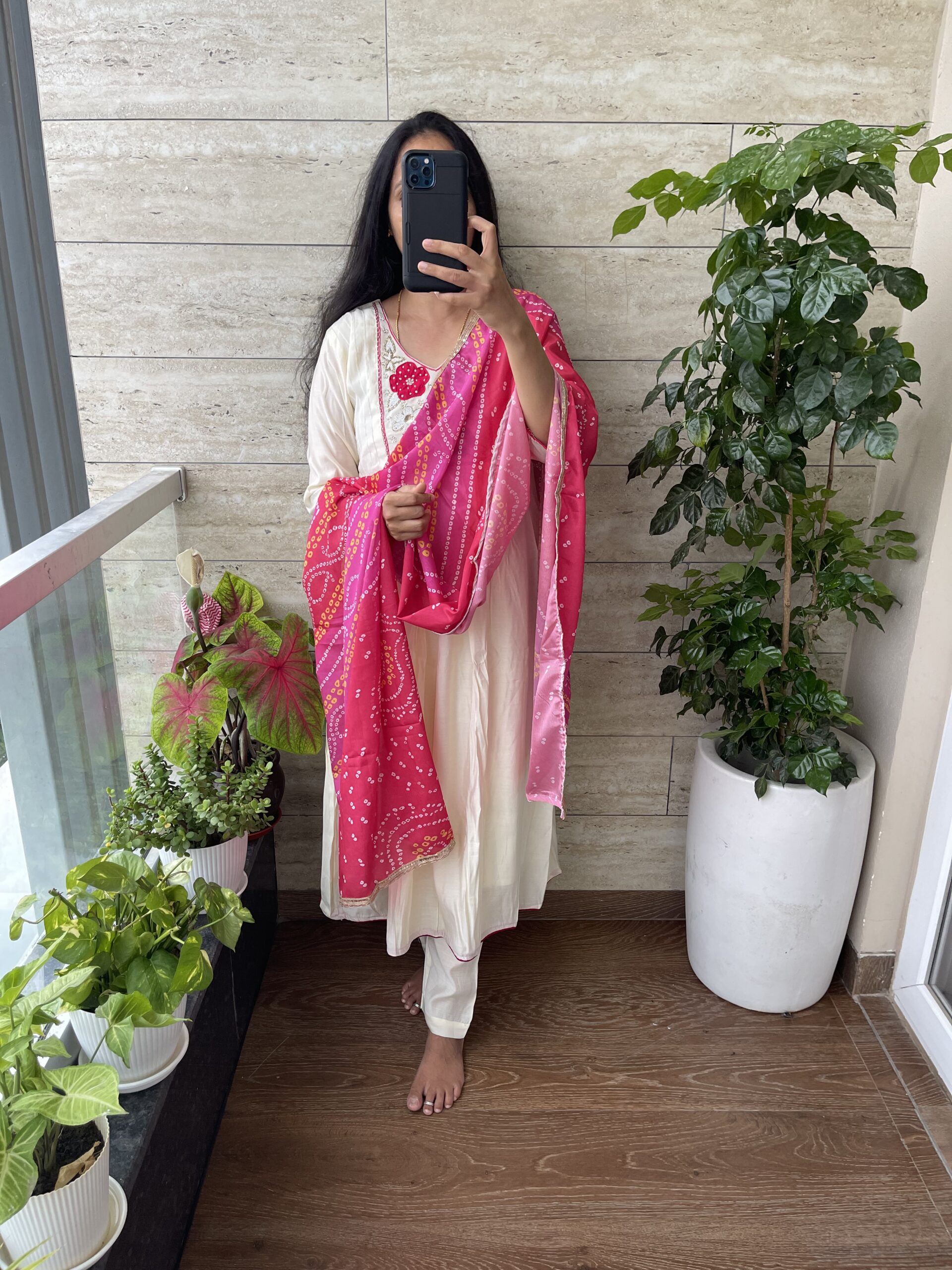 Be the first to review “AV20- Premium Party Wear Mul Chanderi 3Pc Kurta, Pant, Dupatta Set”
