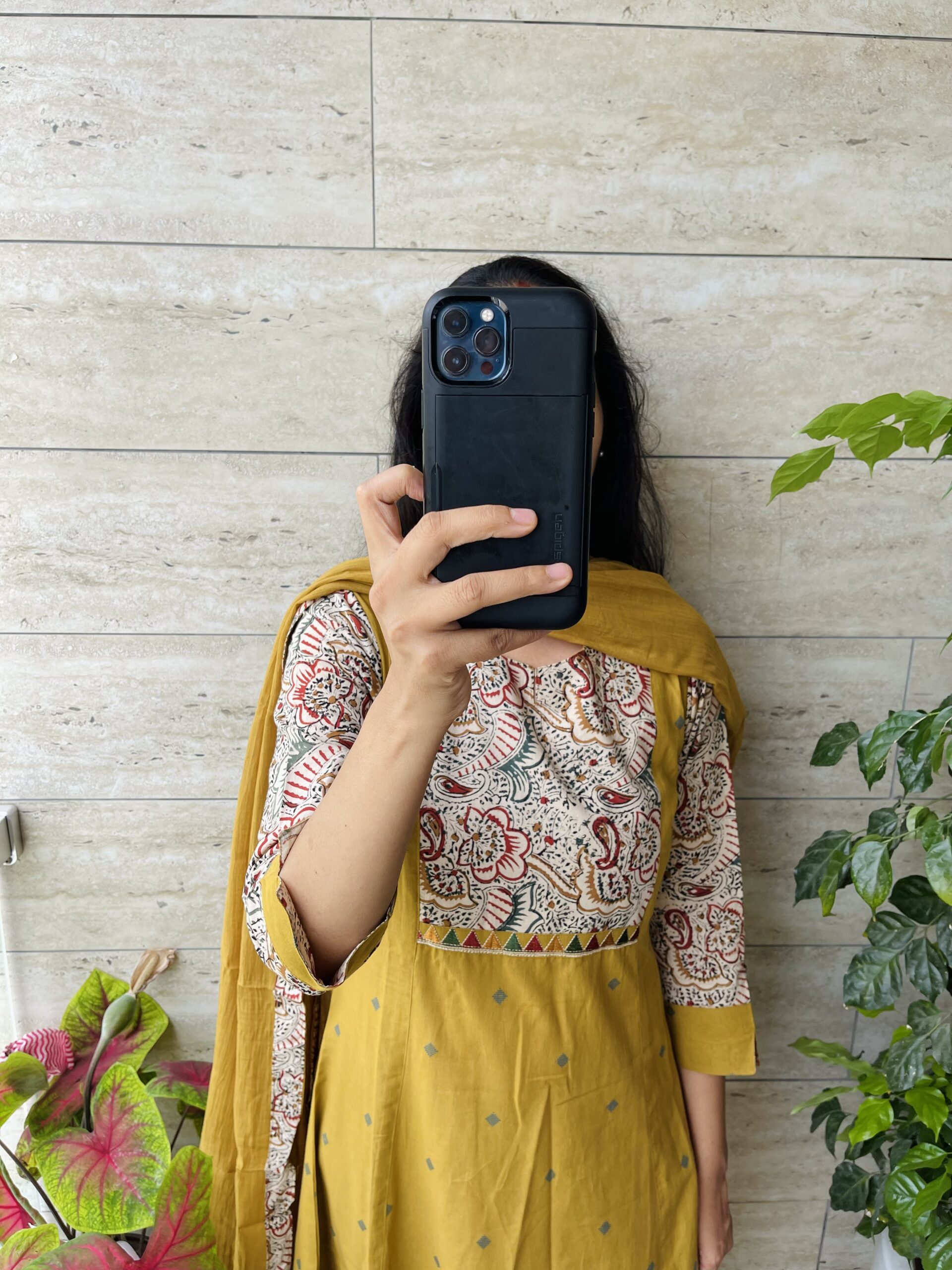Be the first to review “AV26- Premium Cotton With Kalamkari Patch Work Straight Cut Kurta,Pant,Dupatta Set”