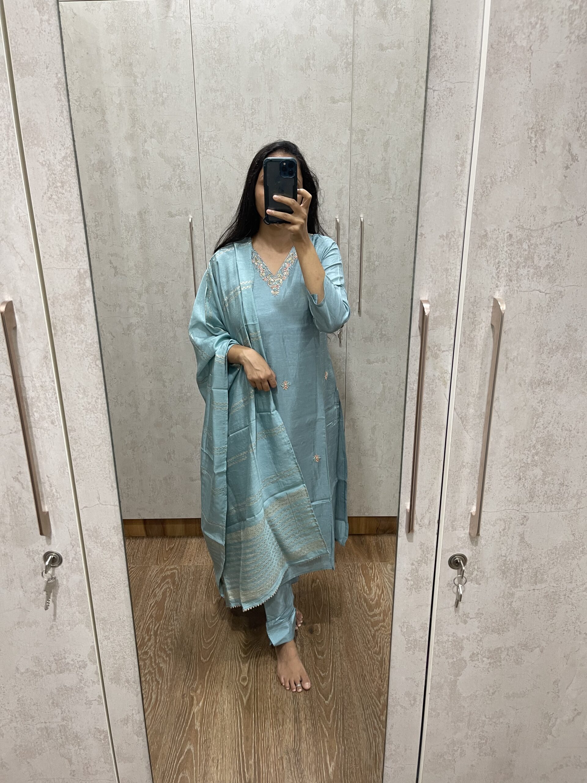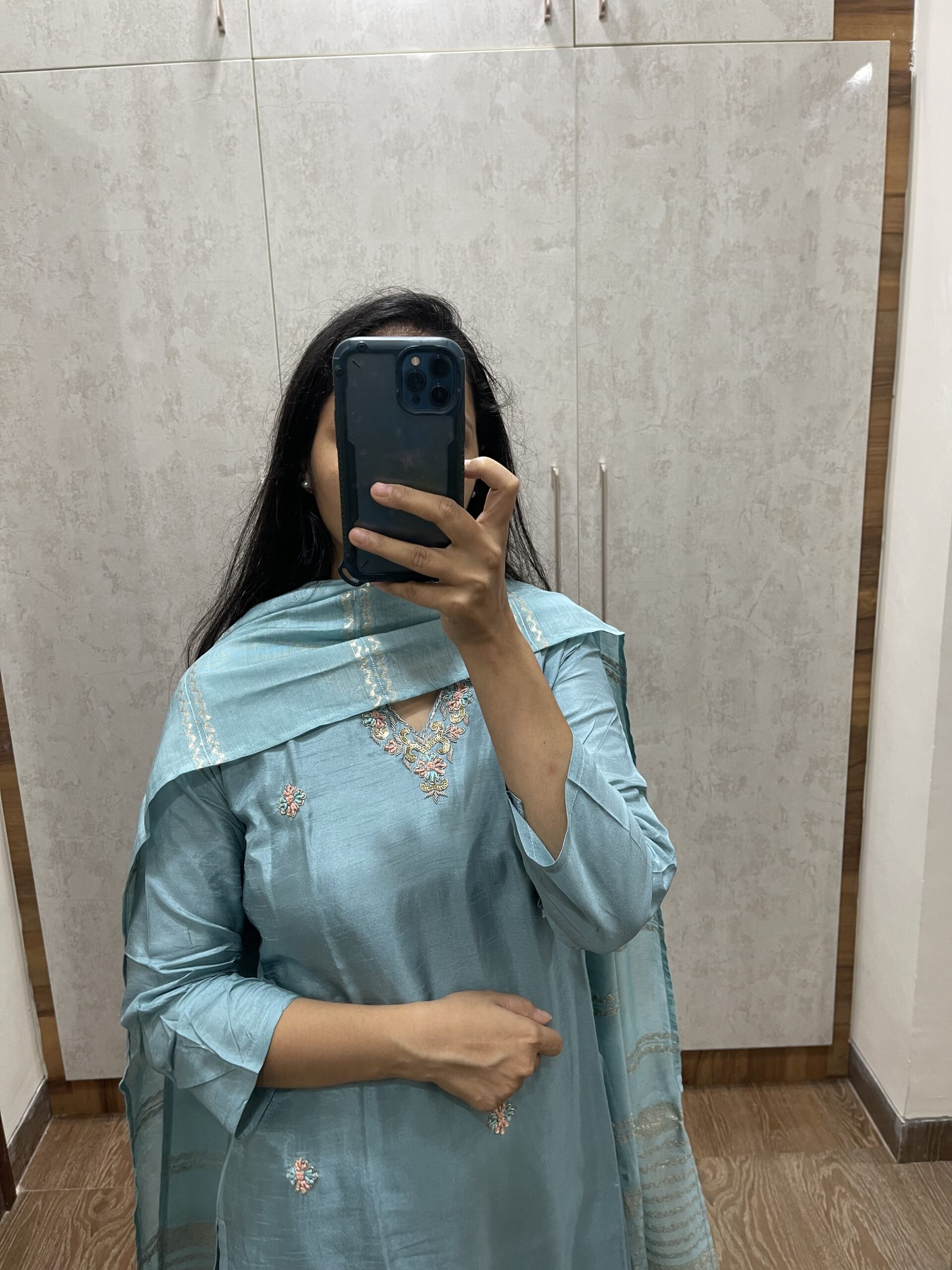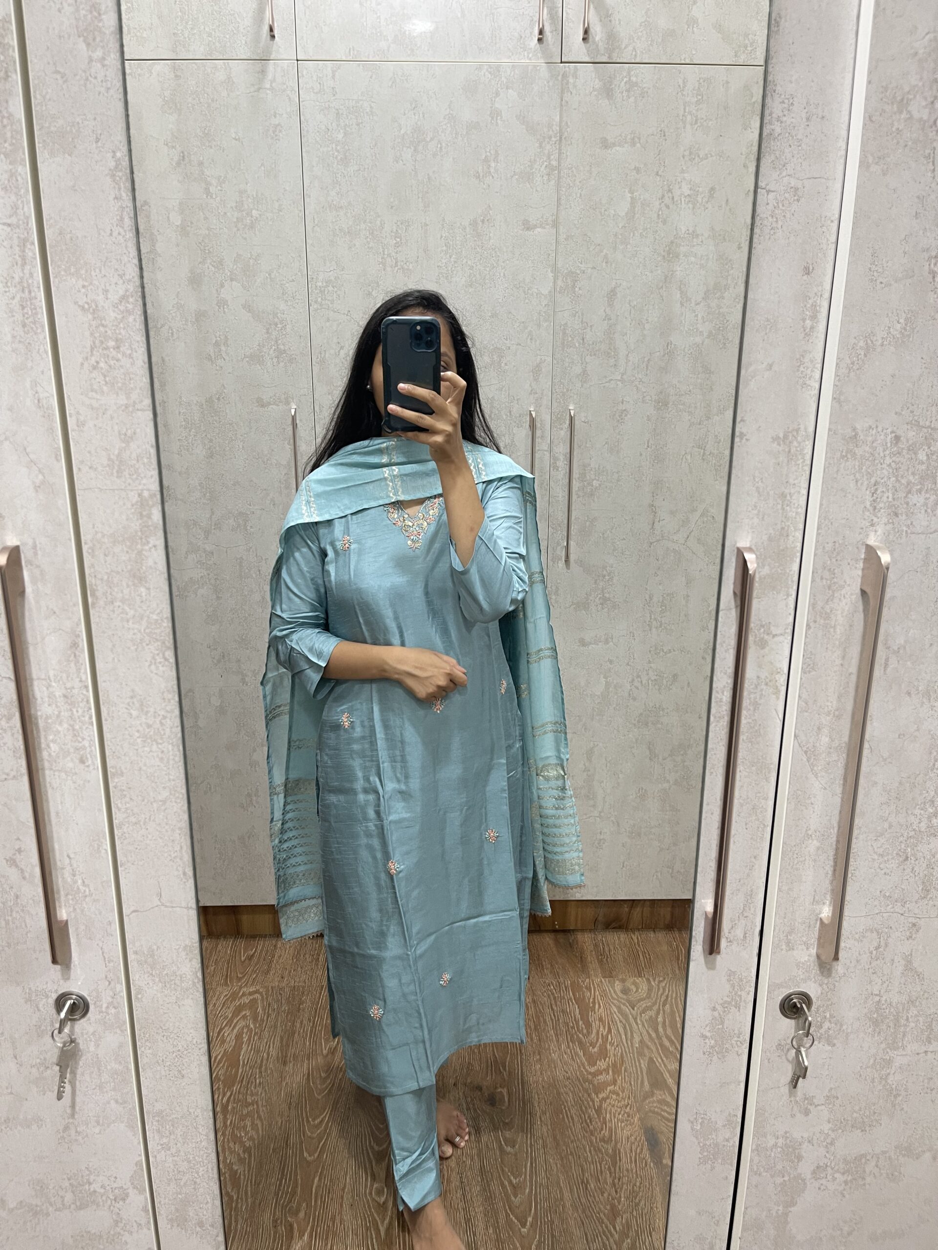 Be the first to review “AV28- Premium Party Wear Dola Silk 3Pc Kurta, Pant, Dupatta Set”