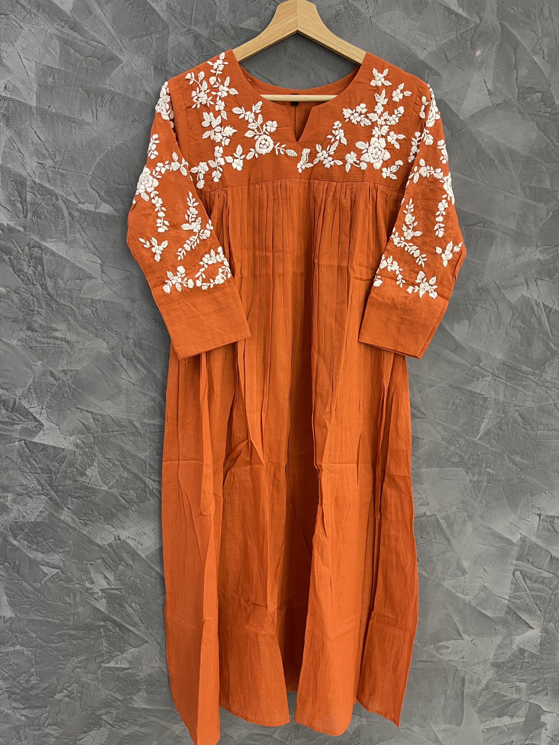Dress is having beautiful hand embroidery of flowers on yoke and Sleeves