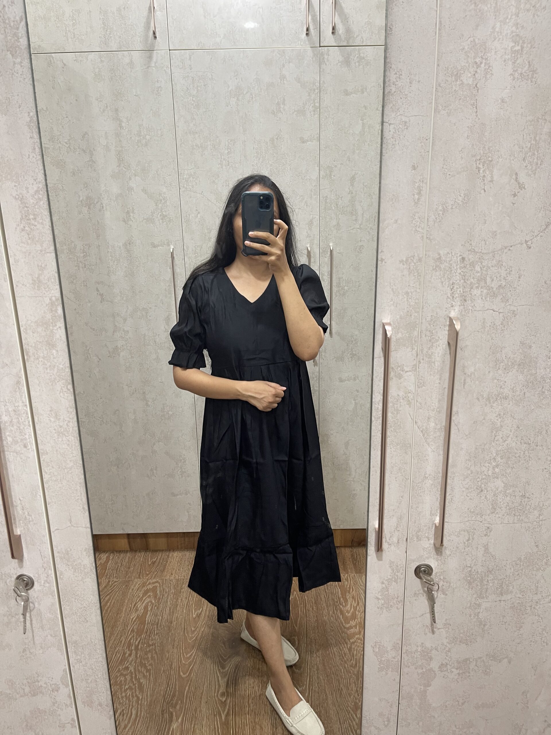 Be the first to review “Nitya- Vatican Silk V Neck Puffed Sleeve Midi Dress”