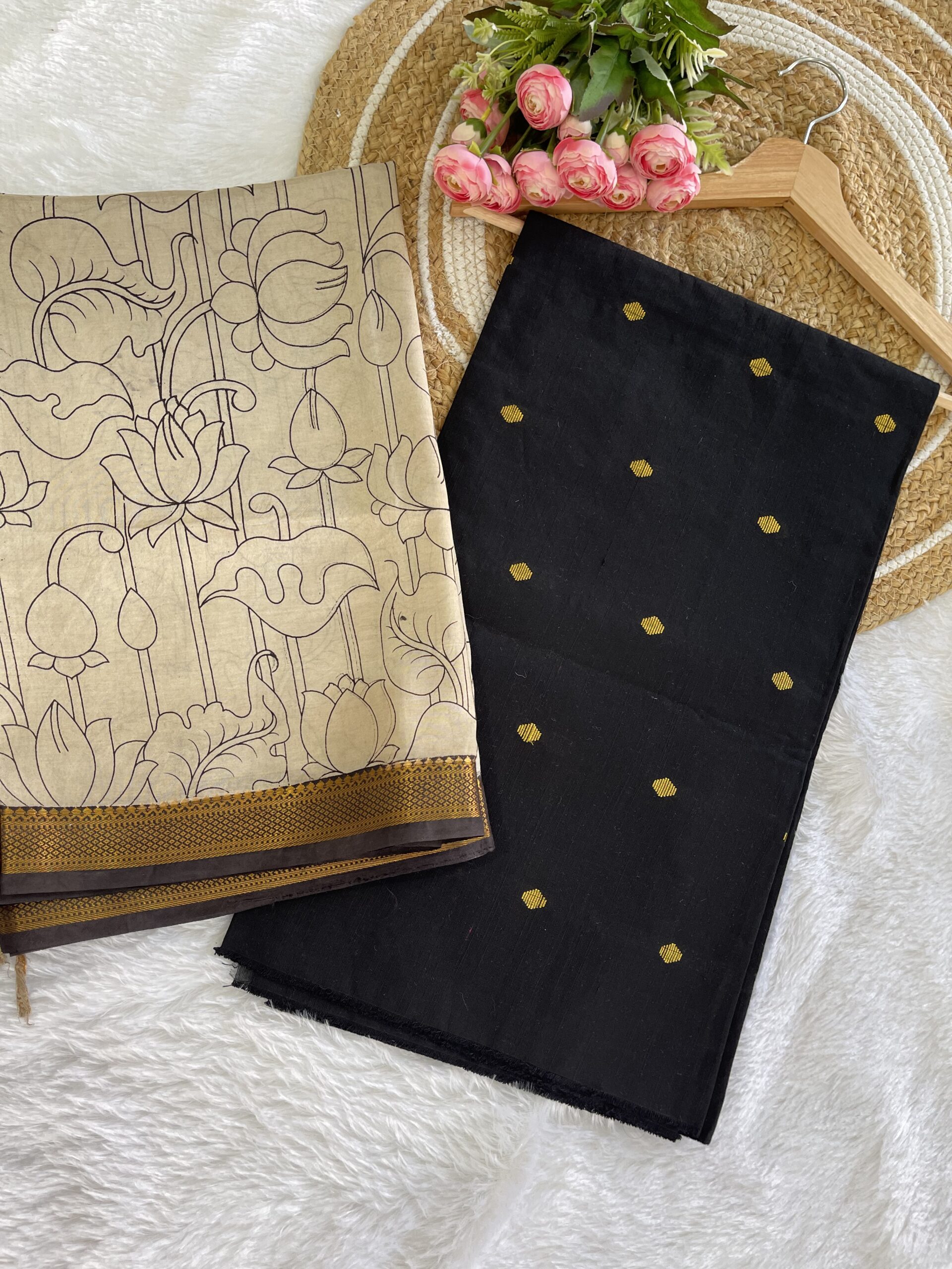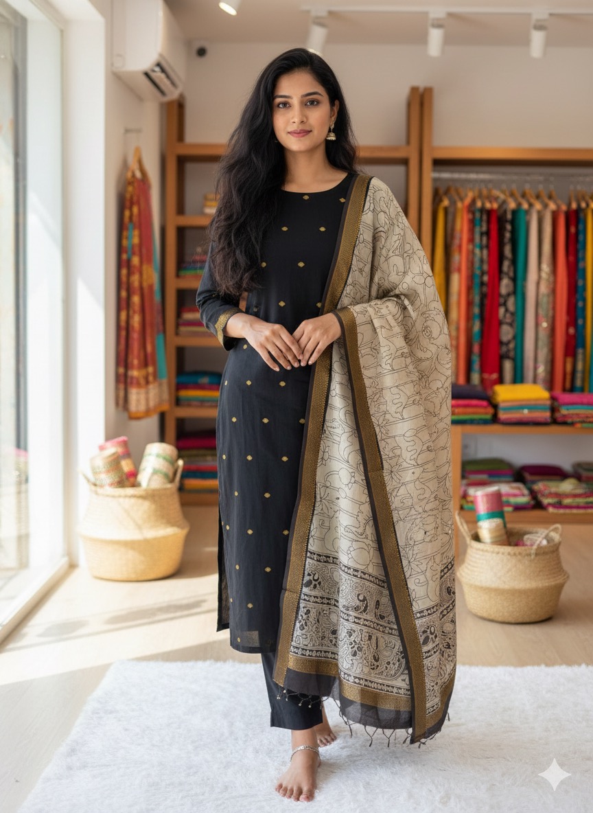 Be the first to review “Premium Raw Silk Top Material Un-Stiched With Kalamkari Silk Dupatta- White”