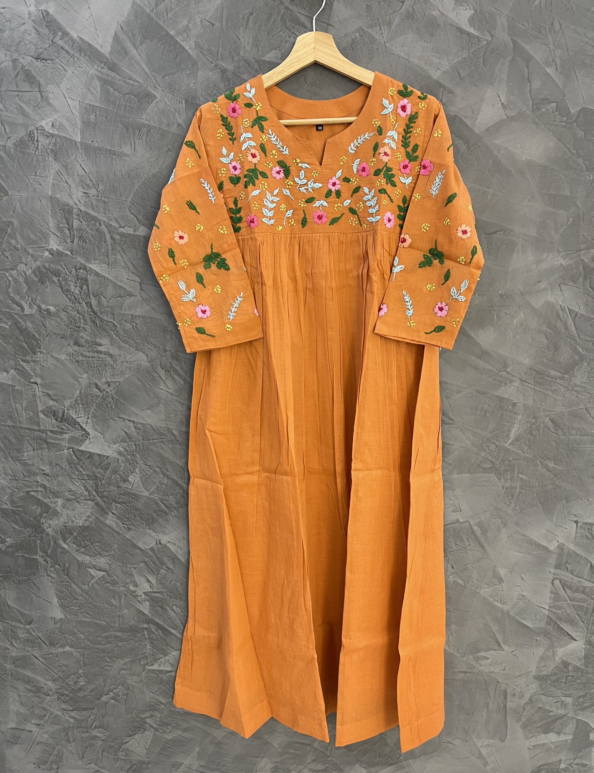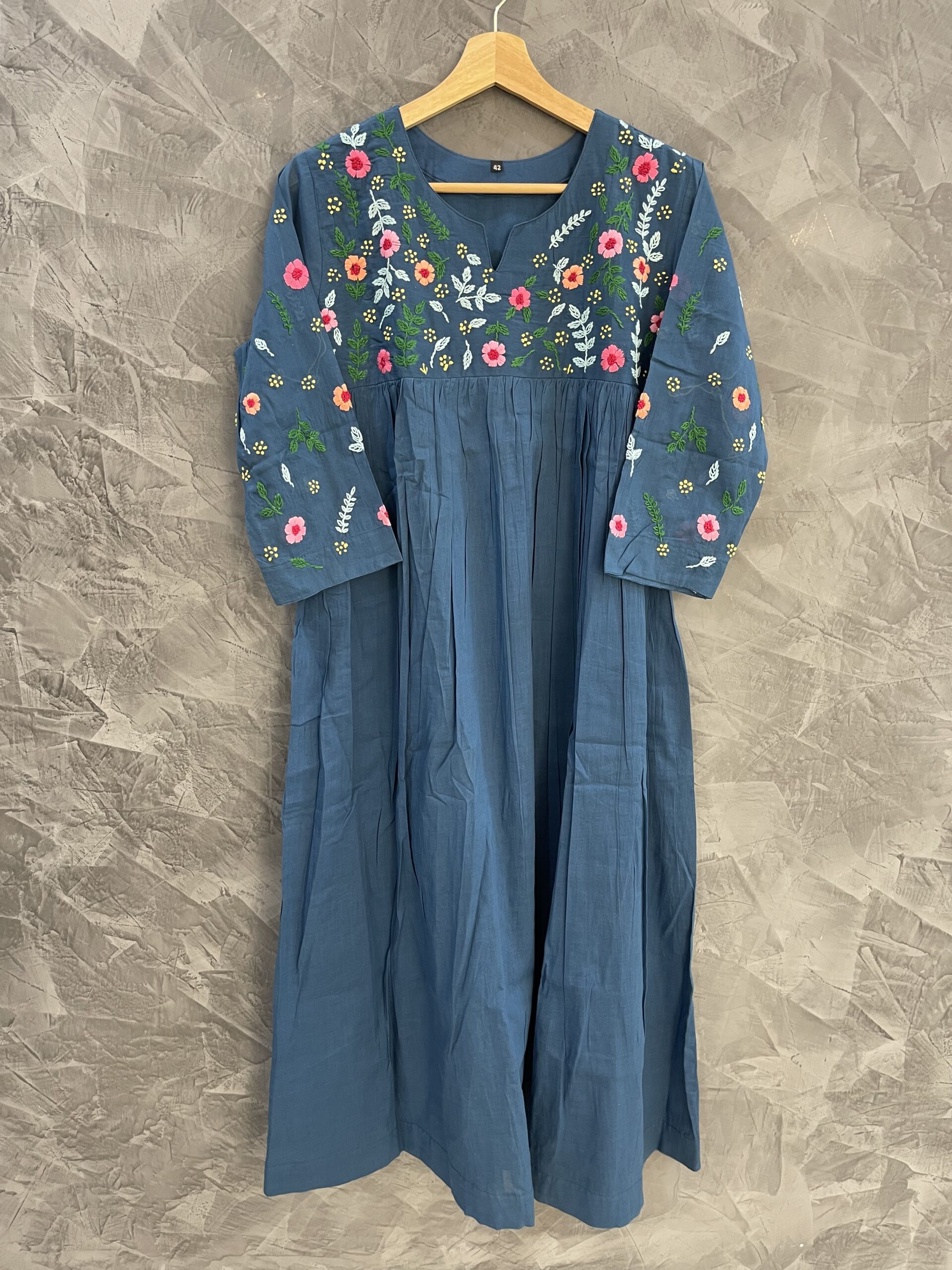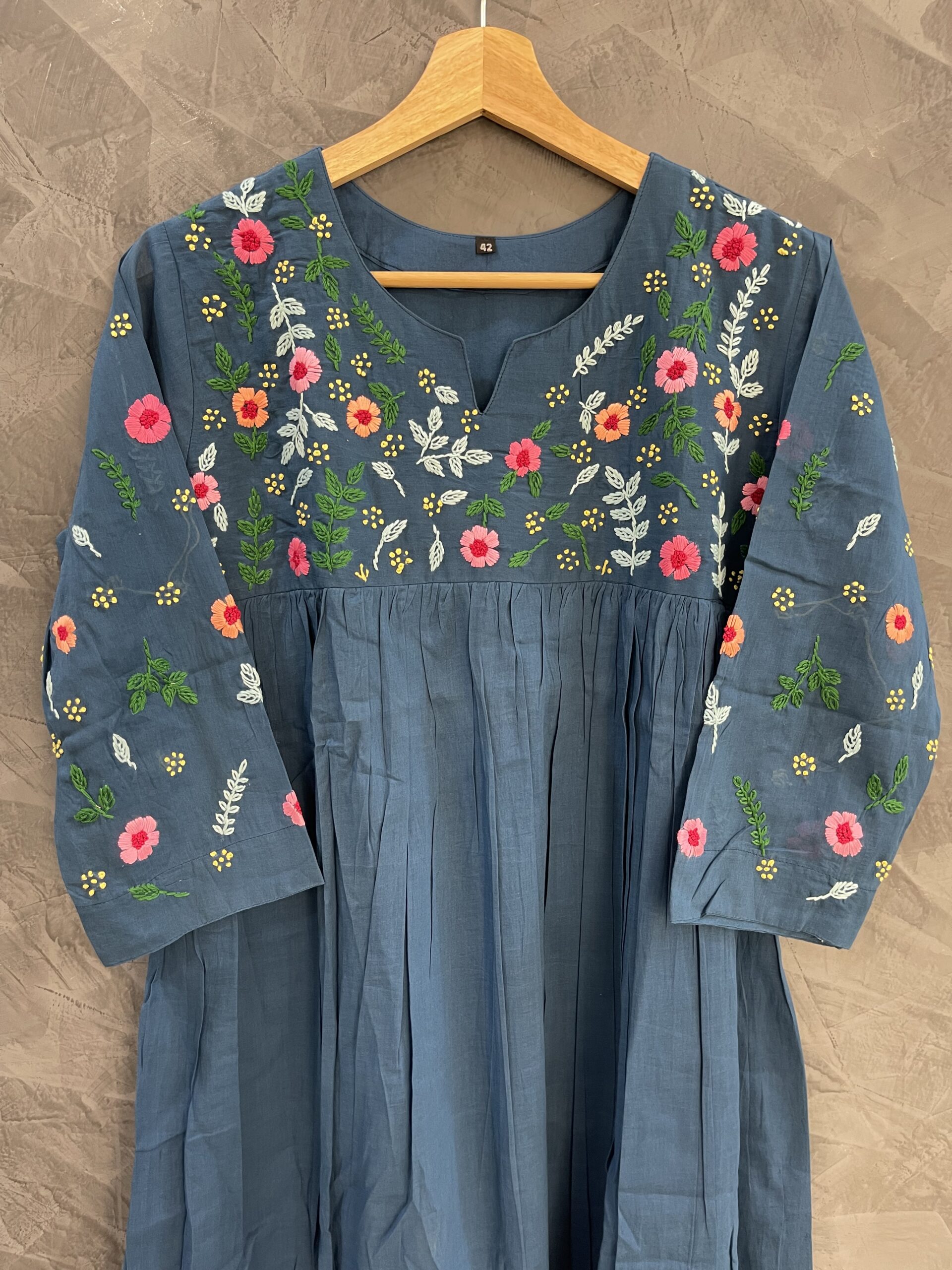 Dress is having beautiful hand embroidery of flowers on yoke and Sleeves