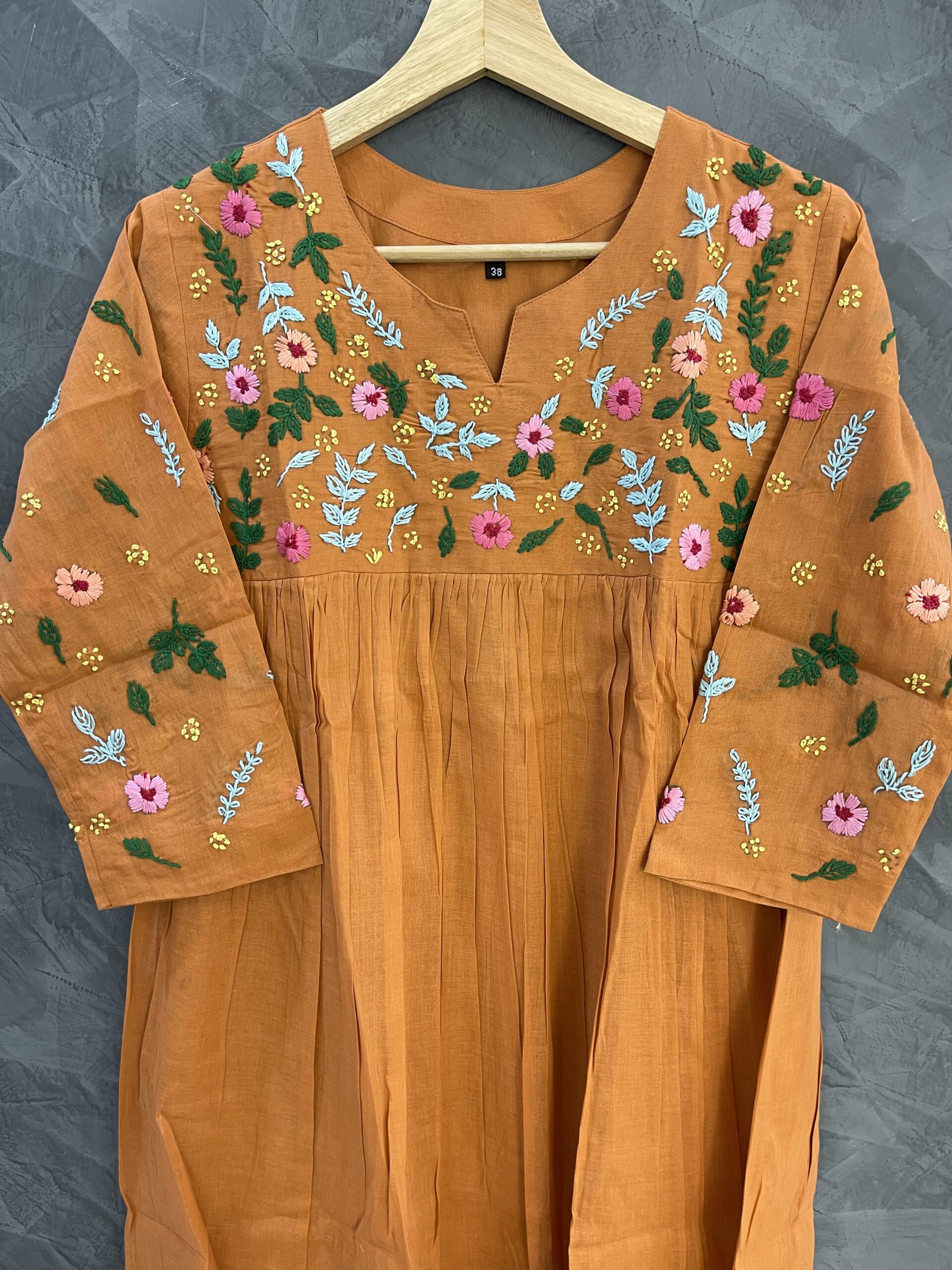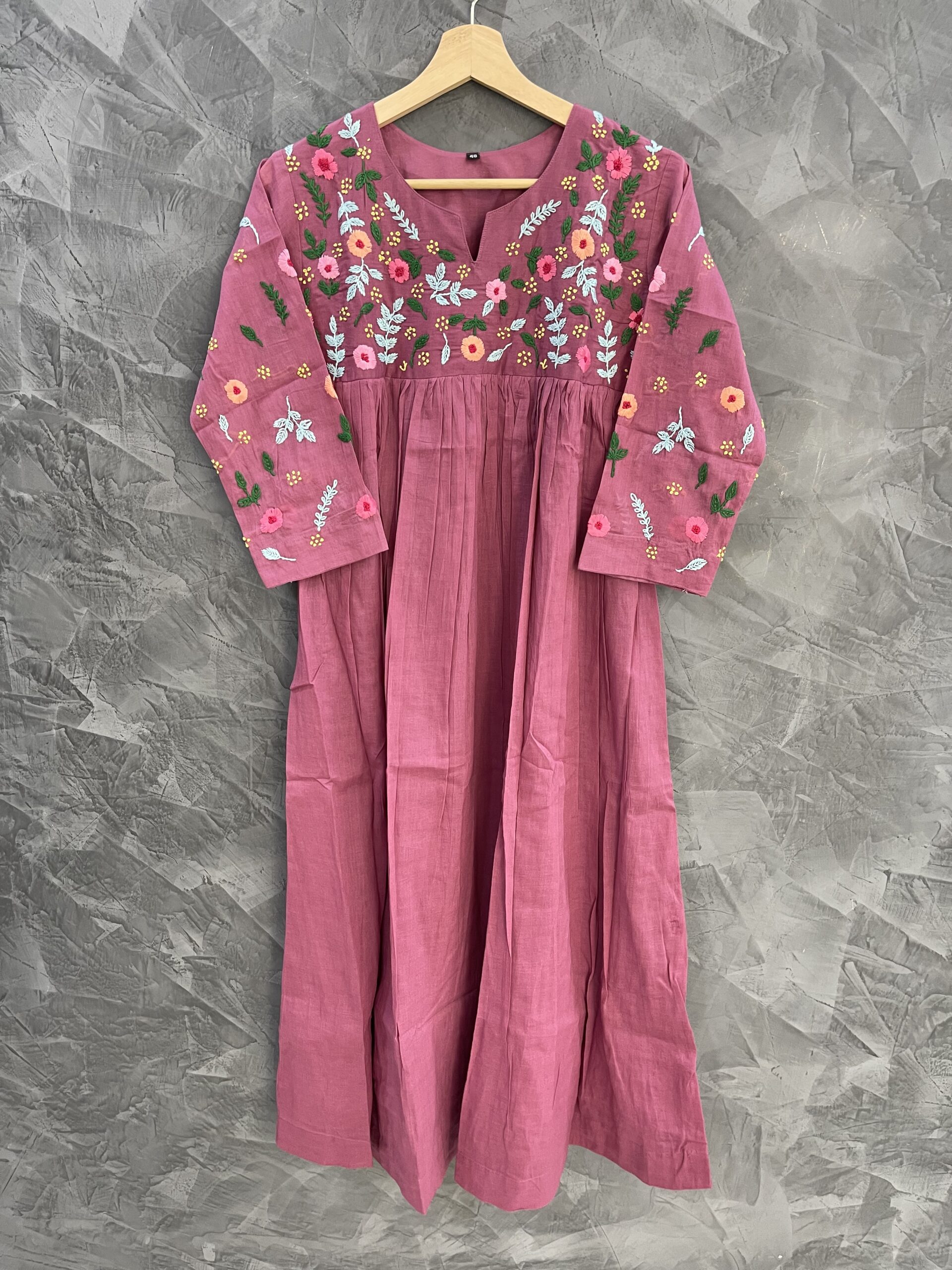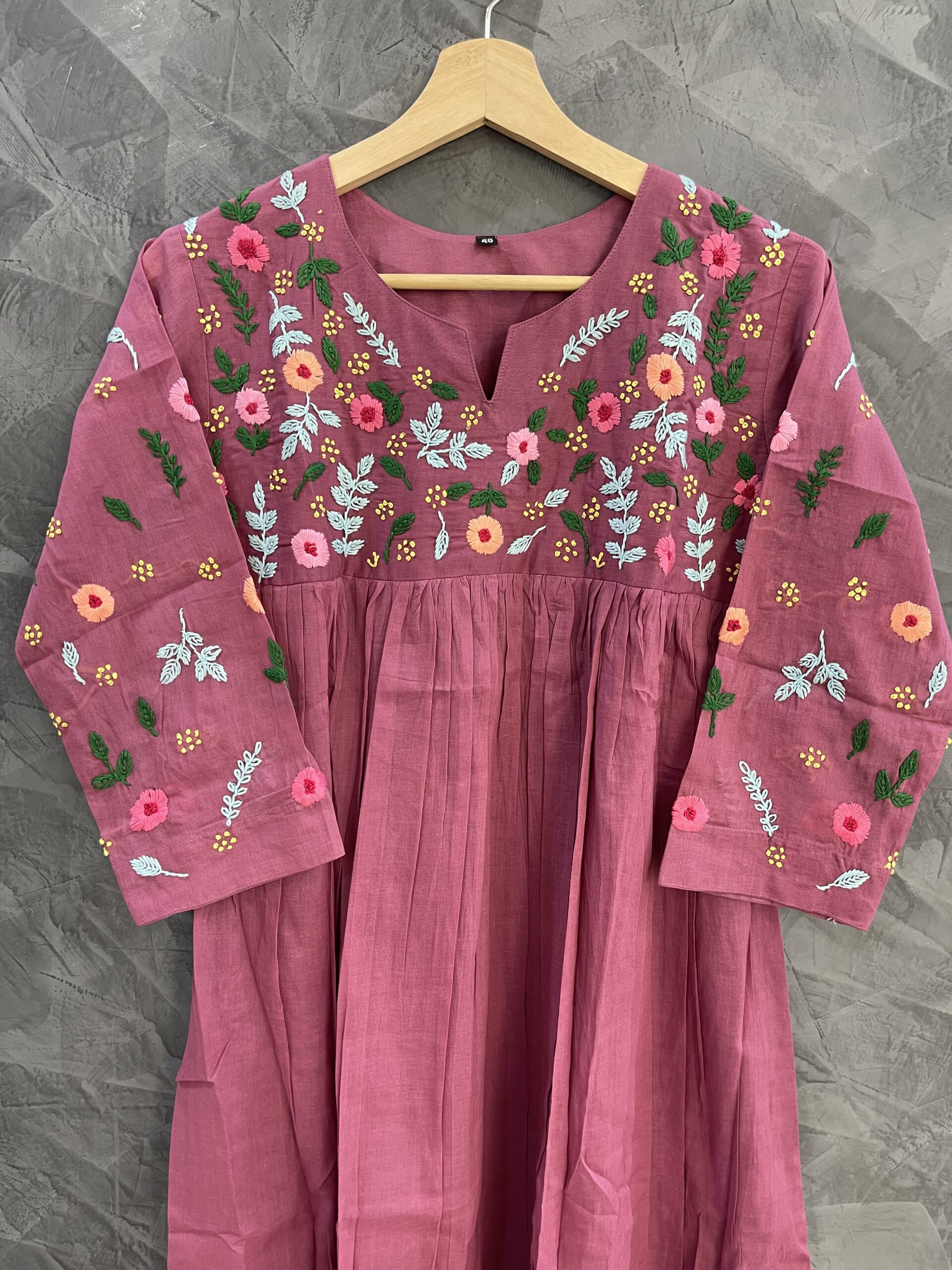 Dress is having beautiful hand embroidery of flowers on yoke and Sleeves