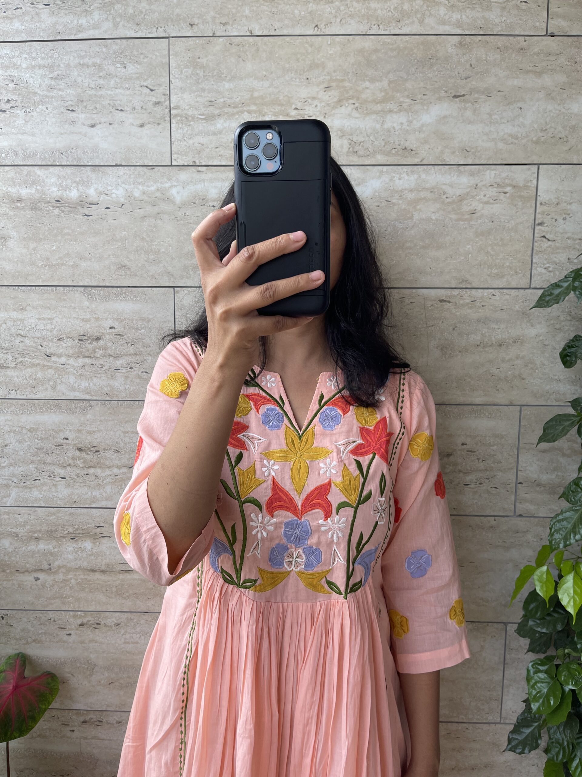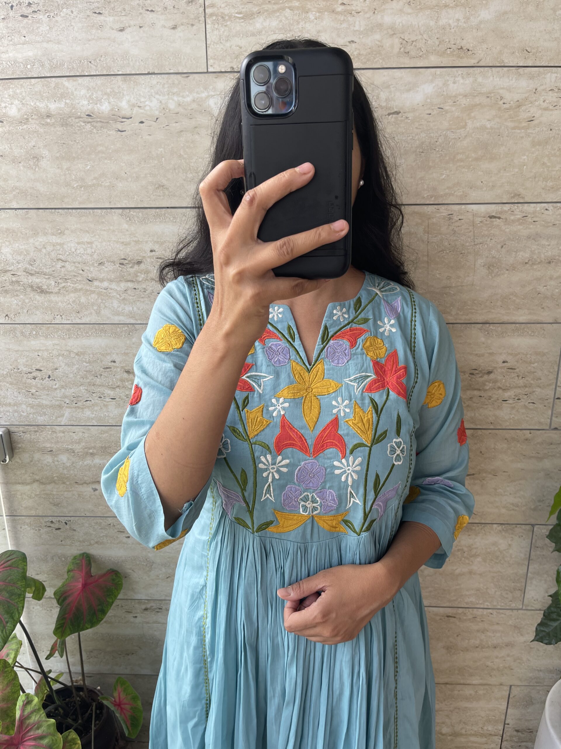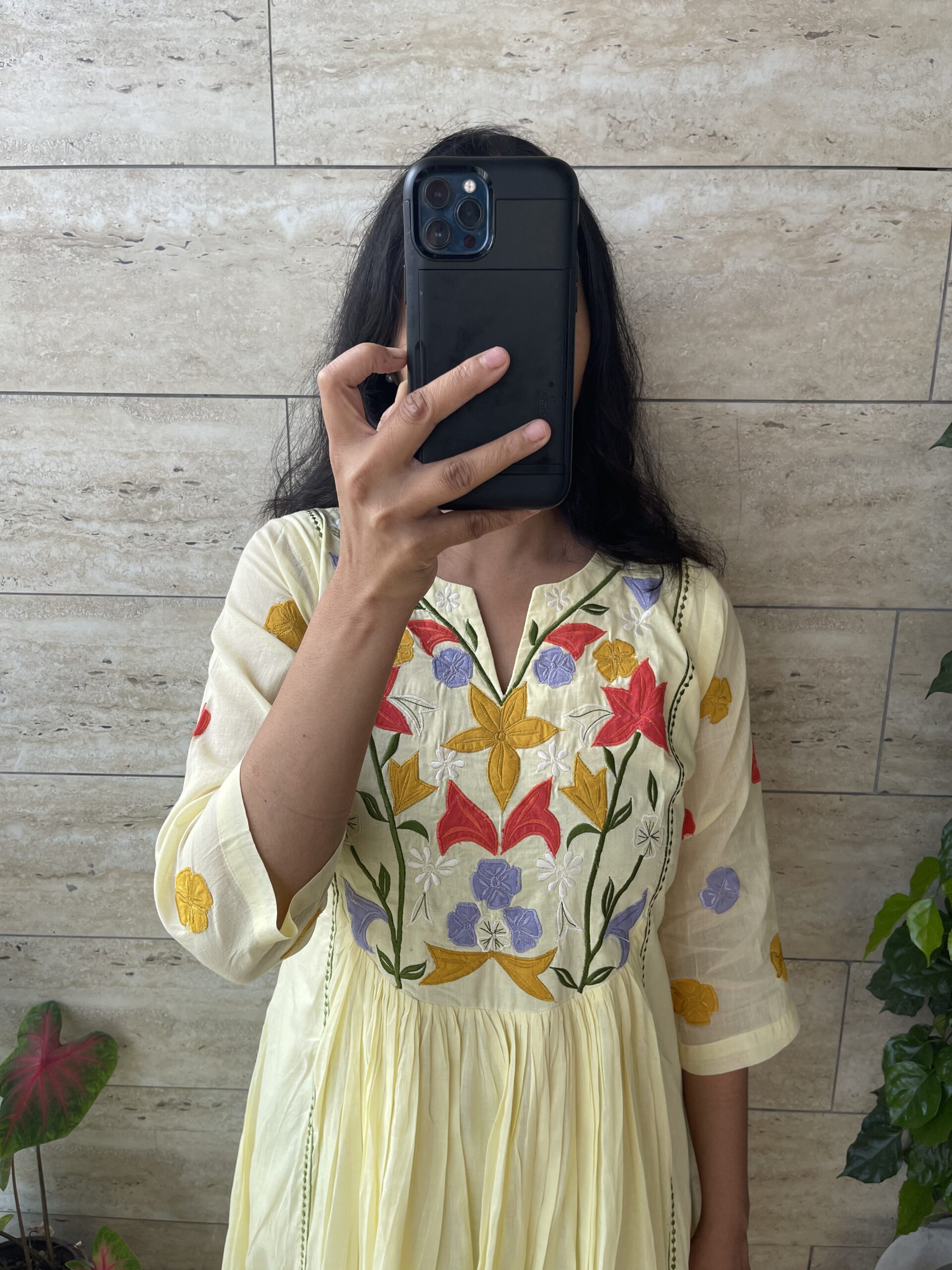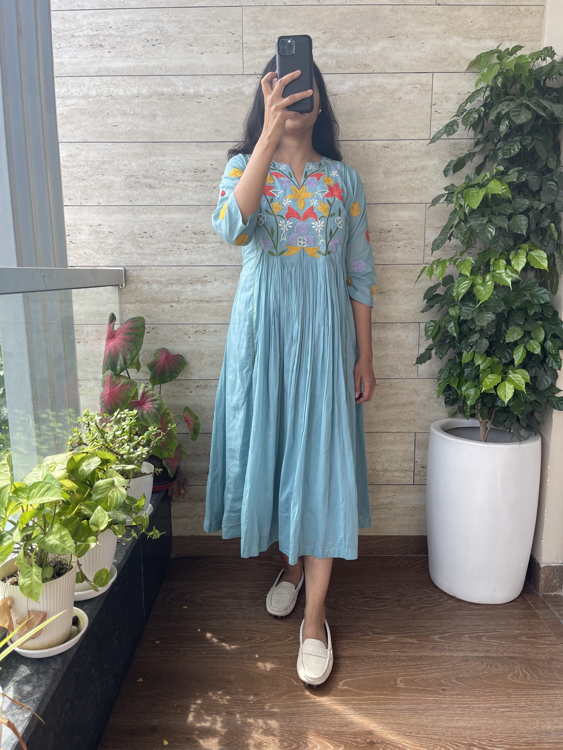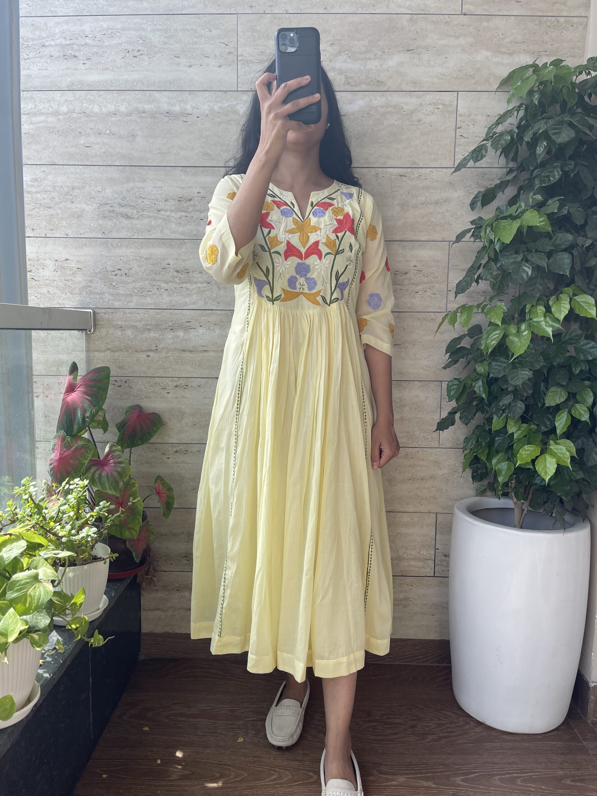 Dress is having beautiful  embroidery of flowers on yoke and Sleeves